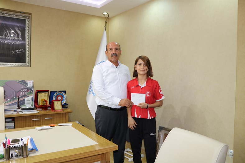 Gençlik ve Spor İl Müdürümüz Sayın Hüssam OLĞAÇ dereceye giren Sporcuları ve Güreş Antrenörü Şenay KAYA’ı makamında kabul ederek, Sporcuları para ile ödüllendirip, başarı dileklerinde bulundu.